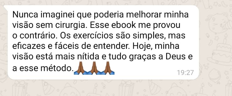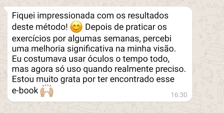 Esse método foi elaborado pela nossa equipe de especialistas baseado nos ensinamentos do Dr. Bates, o Método Enxergar Melhor é uma versão aprimorada de exercícios para melhorar a visão, um guia completo para conquistar uma visão nítida e saudável. Com exercícios simples, dicas práticas e conceitos para o dia-a-dia de como você pode fortalecer seus olhos e enxergar o mundo com mais clareza praticando diariamente esses exercícios.